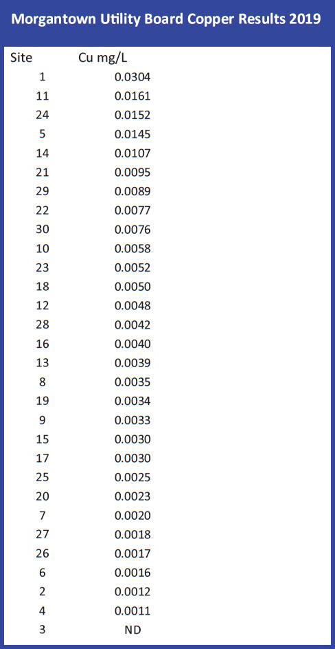 Morgantown Utility Board Copper (Cu) Results 2019